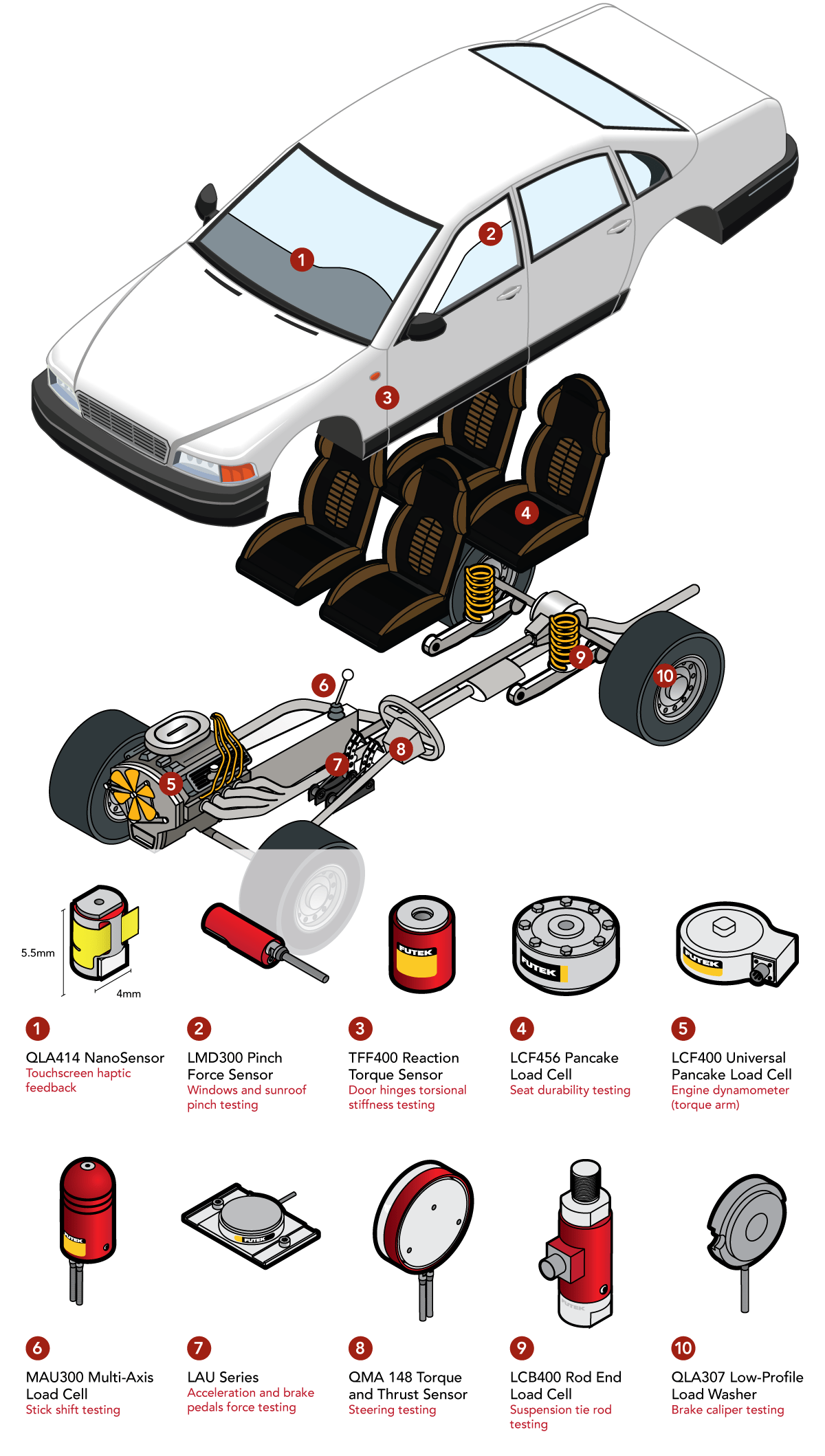 7、加速和制動(dòng)踏板力:制動(dòng)系統(tǒng)測試通常在制造過程的各個(gè)階段進(jìn)行,它從初始開發(fā)階段開始,然后是耐用性,實(shí)驗(yàn)室和賽道測試,并持續(xù)到生產(chǎn)過程,以增加質(zhì)量保證。利用LAU220踏板力傳感器,汽車制造商能夠驗(yàn)證其汽車制動(dòng)機(jī)械的安全性和可靠性。踏板力傳感器設(shè)計(jì)用于測量在加速、減速和變速箱換檔事件期間施加在制動(dòng)器、油門踏板和離合器踏板上的負(fù)載。