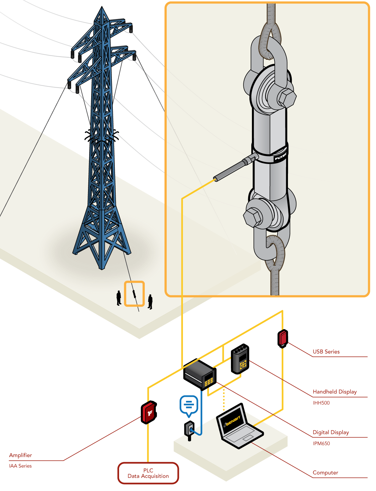4、傳感器的模擬信號可輸出到FUTEK的IHH500手持式儀表上,也可輸出到IPM650鑲嵌式儀表上。或者通過USB模塊進(jìn)行數(shù)字信號輸出。