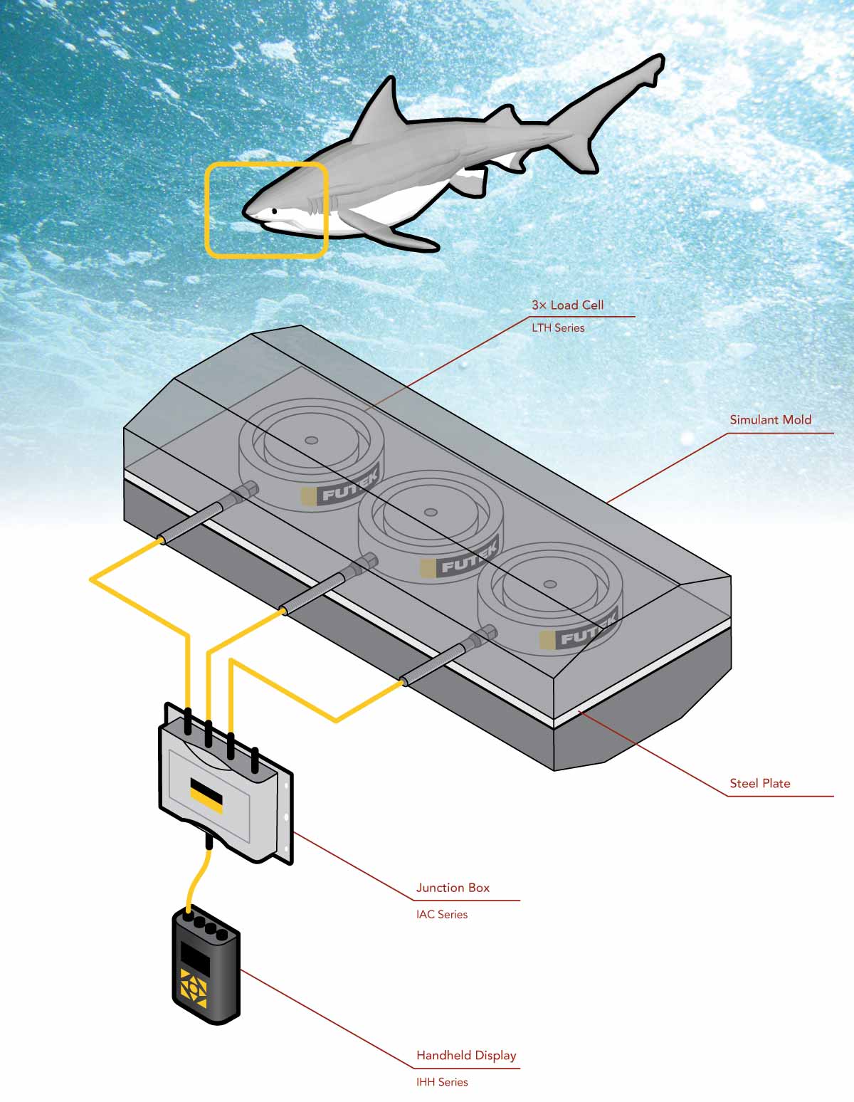 3個LTH500按鈕式力傳感器、四通道變送器IAC200和手持式數顯表IHH500。