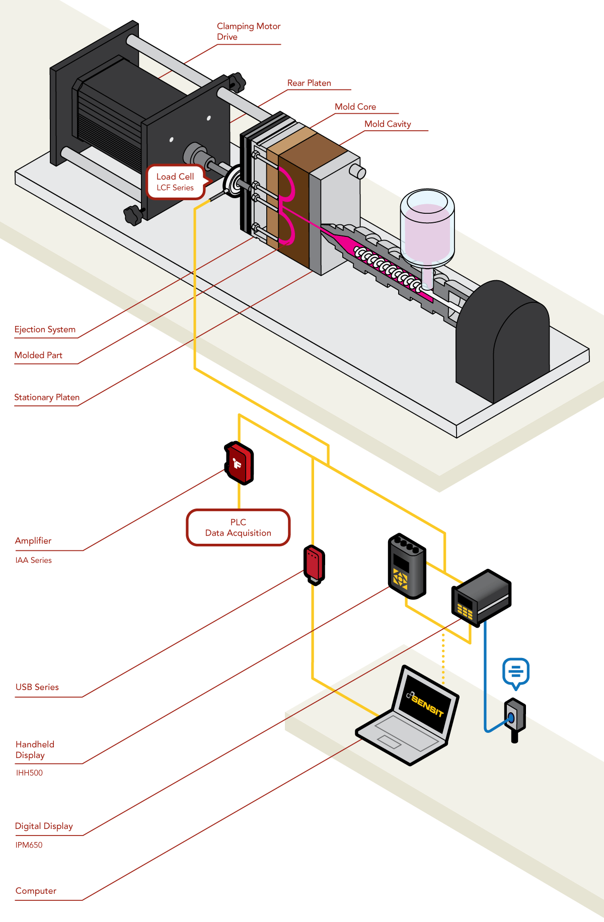 2、當模具因熔化材料而膨脹和收縮時,力傳感器向 PLC 反饋新的壓縮力。
