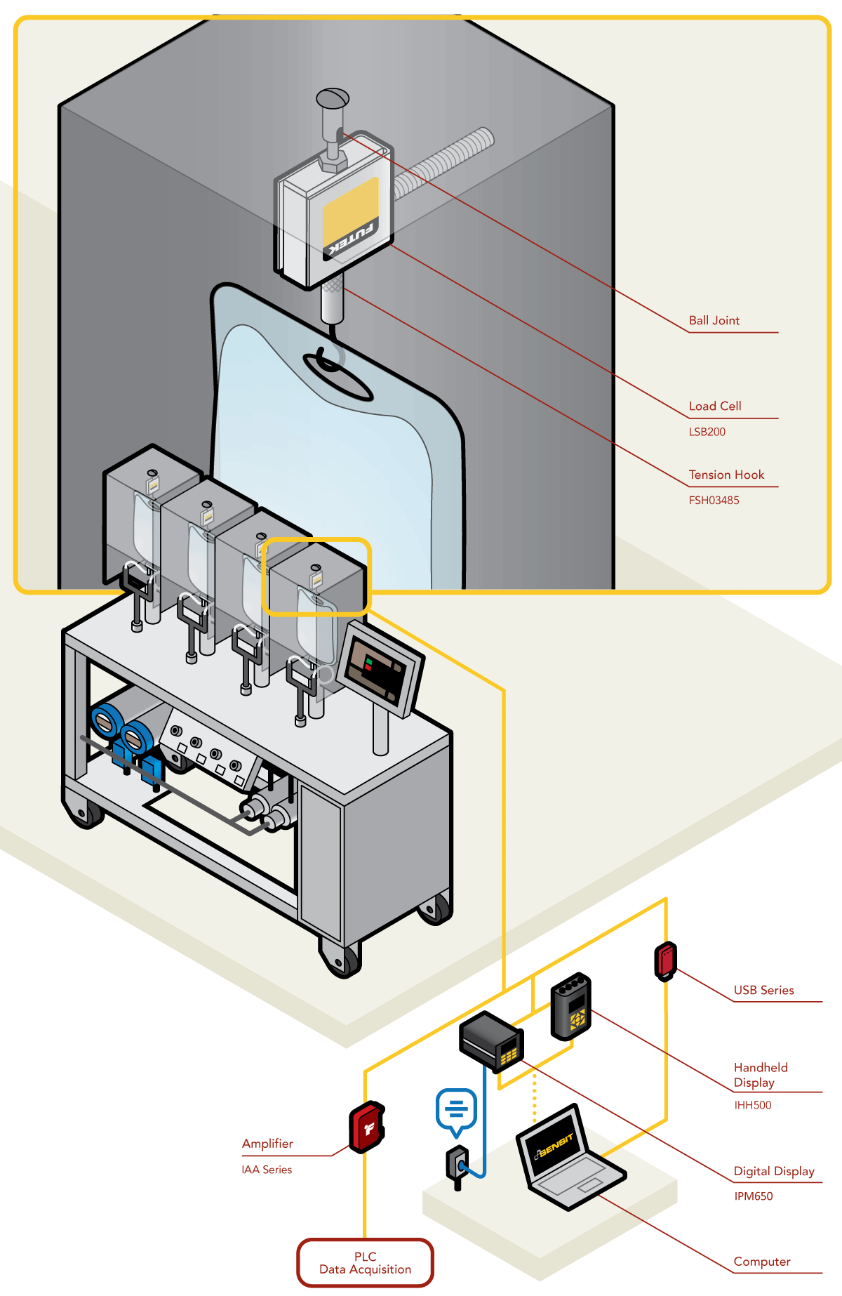 2、如圖所示,FUTEK LSB200微型力傳感器安裝于懸掛IV(靜脈注射)醫療袋的框架之中。