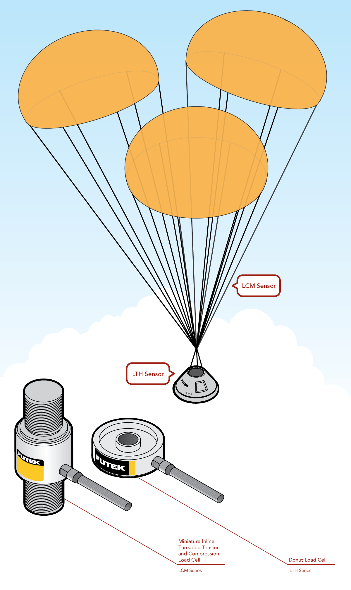 2、對于這個應(yīng)用,F(xiàn)UTEK的力傳感器檢測減速下降過程中獵戶號飛船與減速傘之間受到的拉力。